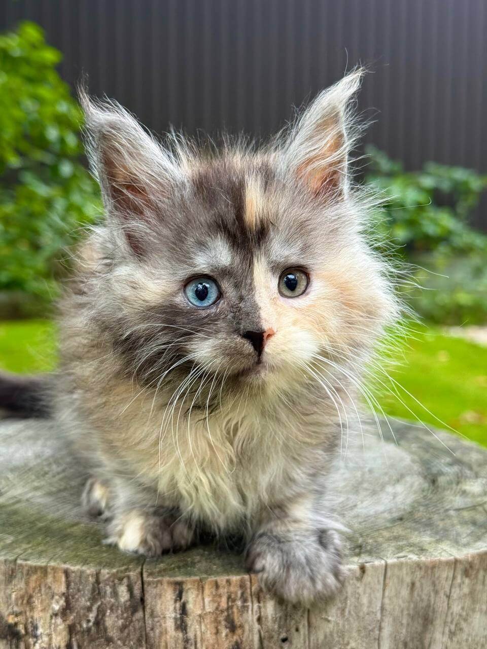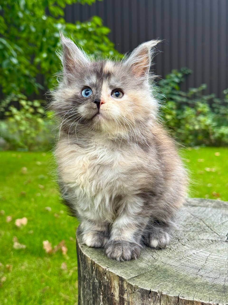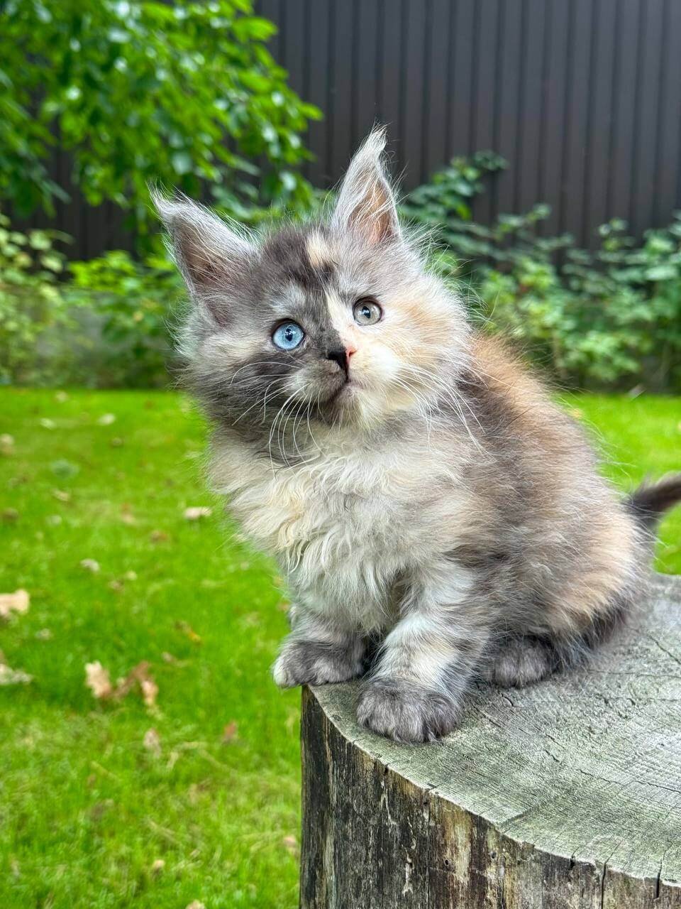 Meet Aygul, a stunning female Maine Coon with a unique blue tortie coat and mesmerizing odd eyes. Born on August 22, 2025, this show-quality kitten originates from champion bloodlines and is registered and ready to join a loving home. Aygul is available for reservation on our website and can make her way to you by pickup from Wood Dale, USA, or through delivery from Chicago to other states.