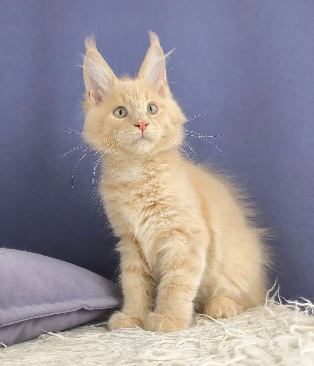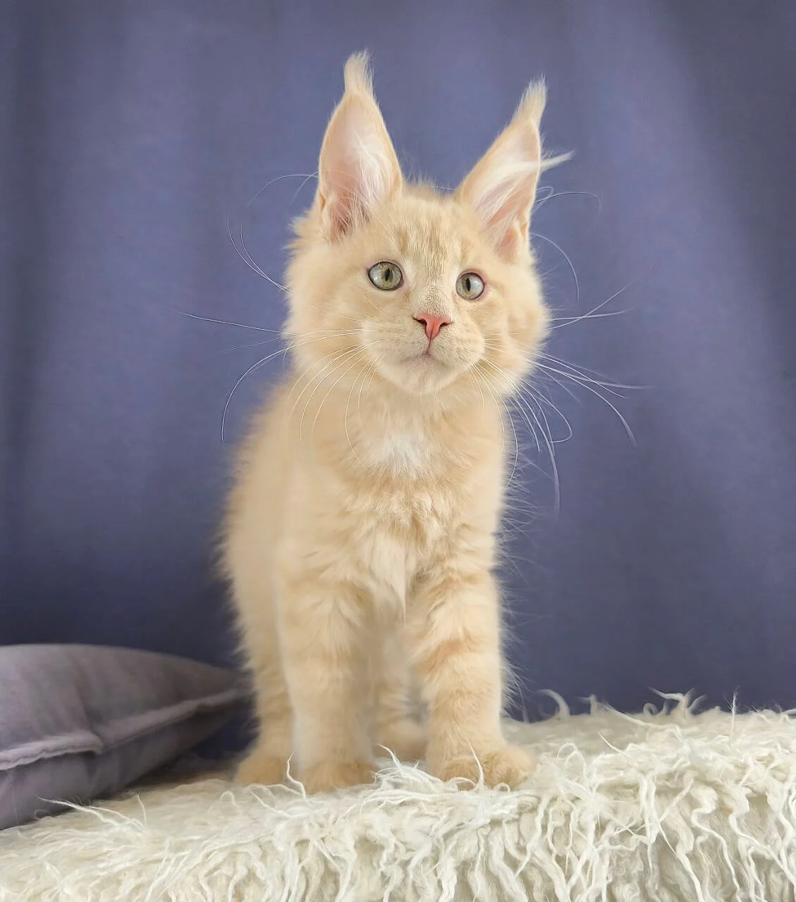 Meet Joy, a stunning male Maine Coon kitten with a luxurious cream coat and captivating yellow eyes. Born on June 18, 2025, Joy comes from champion bloodlines and is show quality, making him a perfect addition to any family. He is registered and will be ready to leave his breeder’s house on October 18, 2025. Although he is already neutered as a pet, Joy can be sold with breeding rights upon request. Located in Europe, Joy is available for reservation on our website for customers in the USA, with pickup available in Wood Dale, or delivery from Chicago to other states. We provide wood pellets or clumping litter for Joy’s comfort and offer seven-day-a-week support to assist with all of your kitten needs. To reserve Joy, a non-refundable deposit of $500 is required. For peace of mind, we offer a WCF pedigree and have clear policies to ensure a smooth adoption process. If you’re looking to expand your family with a delightful and high-quality Maine Coon kitten, Joy could be your perfect companion! Check out more playful moments on our Instagram and see why Joy could be the perfect addition to your home.