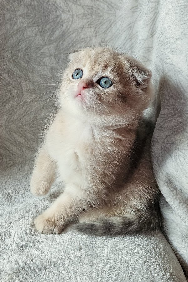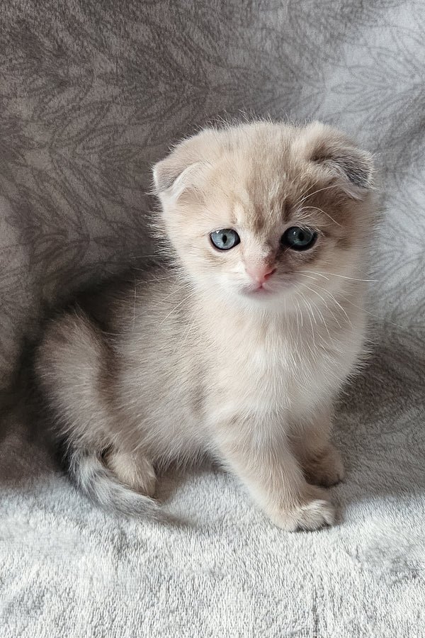 Hi, I’m Oslo a Scottish Fold boy with a blue golden spotted tabby coat and clear green eyes. I’m the quiet, thoughtful kind who notices everything: the way you hum in the kitchen, the sunlight moving across the floor, the soft sound of my name when you call. My fur is plush and warm-toned, easy to keep tidy with a gentle weekly brush, and my folded ears give me that always-listening look that makes people smile. I eat Brit Care and keep a steady rhythm to my day playful bursts when you’re ready, then calm company while you work or rest. I’m sociable and communicative in soft ways: a chirp, a blink, a graceful hop onto the spot beside you.