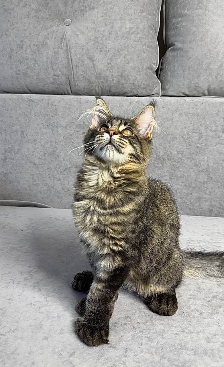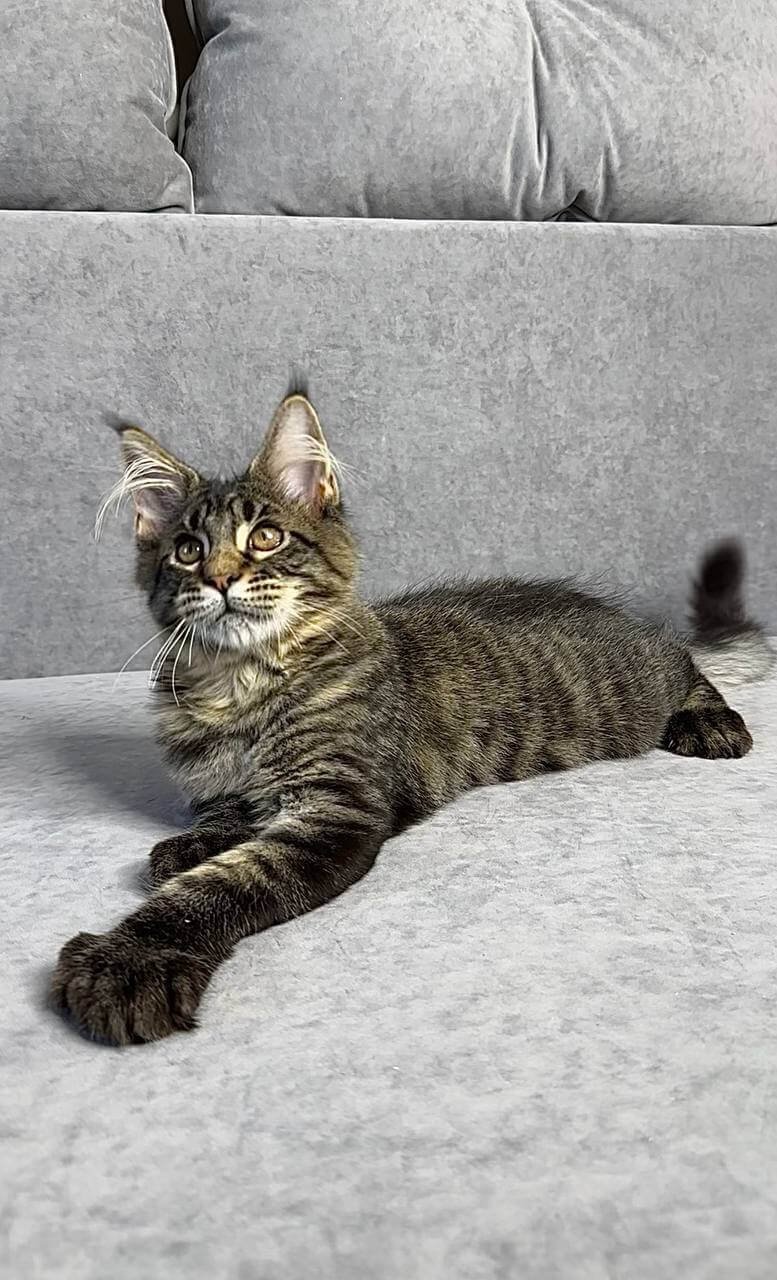 Meet Porshe, our stunning male Maine Coon with unique poly feet, ready to capture your heart. Sporting a beautiful black tabby spotted coat and striking yellow eyes, Porshe comes from champion bloodlines, ensuring he stands out both in show rings and at home. Born on April 15, 2025, he’ll be ready to join his new family on August 15, 2025. Porshe is sold with show quality assurance and can be reserved for pick-up in Wood Dale, USA. We offer delivery to other states from Chicago by reservation on our website. He will be neutered or spayed, unless you want breeding rights. For added peace of mind, we provide seven days a week support to help with all your kitten care needs. Secure Porshe today with a $500 deposit. Explore our website for more details and visit our Instagram page to see our adorable kittens in action!