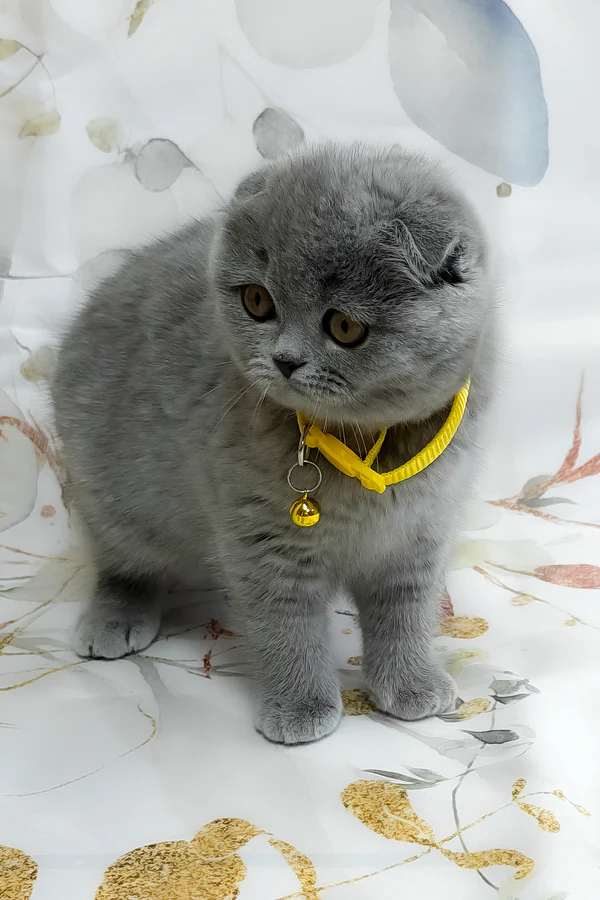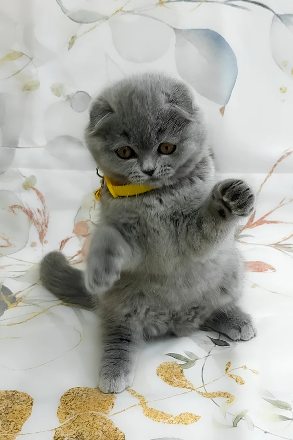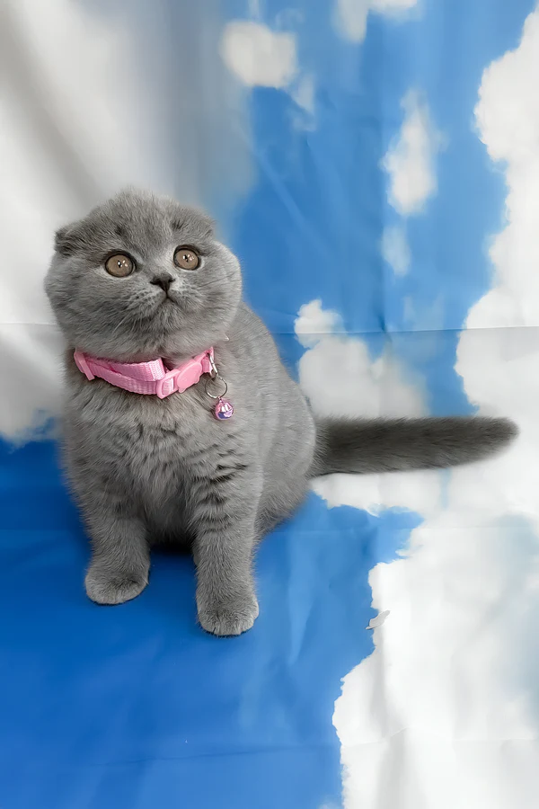 Hi, I’m Venera, a blue Scottish Fold girl with round cheeks, soft gold eyes, and a calm way of moving that makes rooms feel peaceful. I’m the quiet companion type who greets you gently at the door, settles by your chair while you work, and asks for a few minutes of play before a cozy nap. I do well on Royal Canin and like predictable mealtimes, fresh water, and a tidy litter box. I learn household rhythms quickly, keep good manners with my scratching post, and enjoy sunspots, window views, and soft voices. I’m affectionate without being pushy, present without taking over, and happiest when life feels steady and kind.