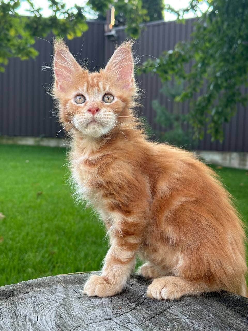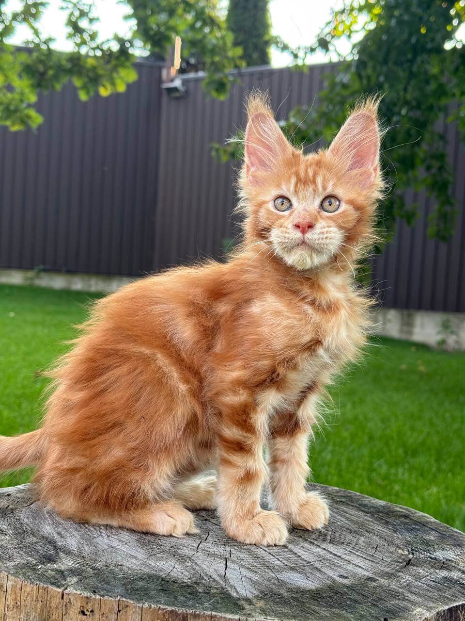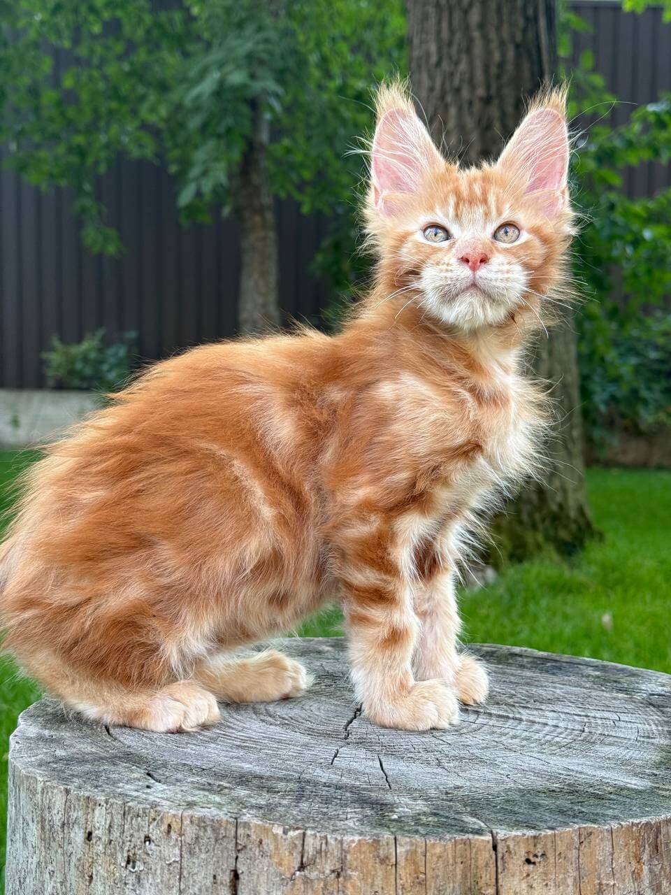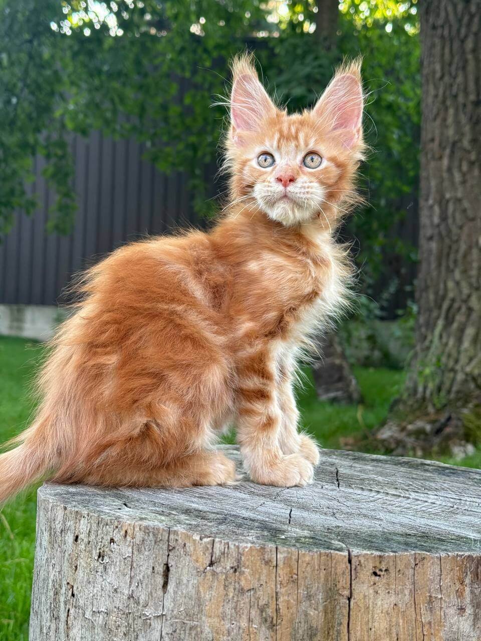 Introducing our charming Maine Coon kitten, a Winner Male with show-quality status, ready to bring joy to your home. This striking boy features a stunning red tabby blotched coat and captivating yellow eyes. Born on June 21, 2025, he’s set to join your family from October 21, 2025. With champion bloodlines and a conditional pedigree, this registered kitten is available by reservation for U.S. customers on our website and can be picked up in Wood Dale, USA, or delivered to other states from Chicago.